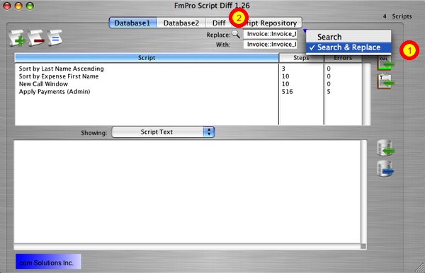 Script Diff Demo Available for download... How to search and replace text within ScriptMaker scripts Text within any script can be searched by entering a search